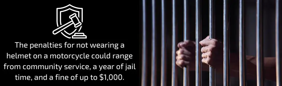 The penalties for not wearing a helmet on a motorcycle could range from community service, a year of jail time, and a fine of up to $1,000.
